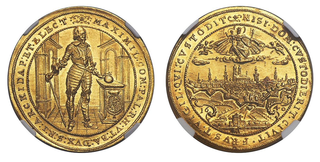 This 1640 Germany Gold 5 Ducat Maximilian I has been certified as MS-64 by NGC, one of the top two coin grading services.