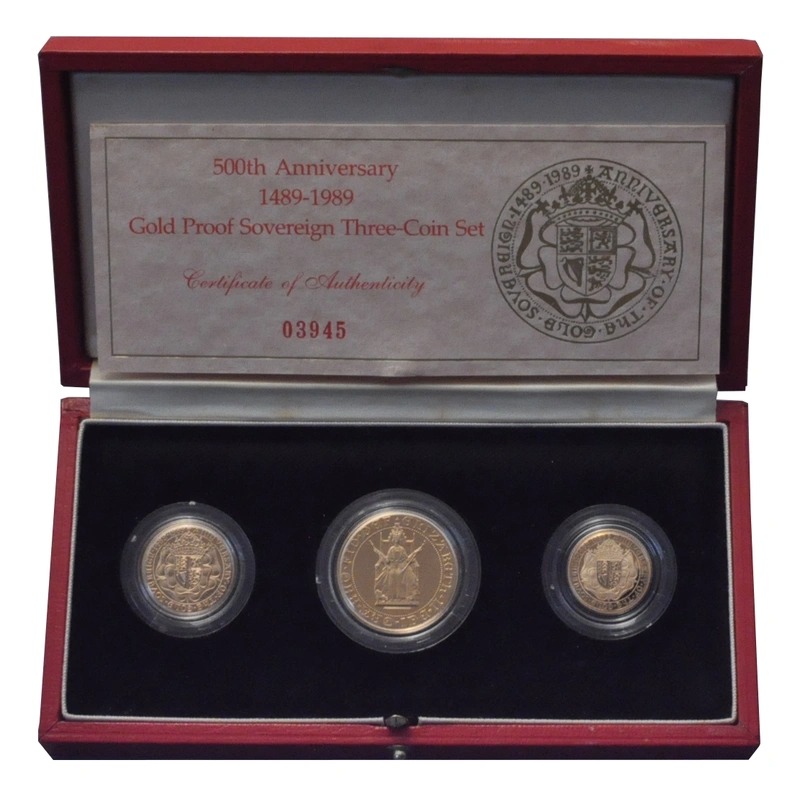1989 Proof Gold Sovereign 3 Coin Set 500th Anniversary Edition Boxed