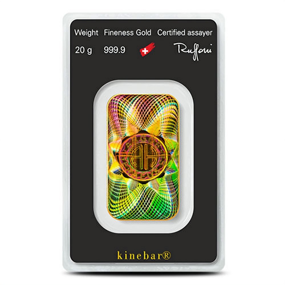 Argor-Heraeus gold for sale comes in a wide range of weights and styles. The primary options available to a wide range of investors are the classic minted ingot and traditional cast bar, but there is also the unique Kinebar. With an embossed “kinegram” on the substrate of the reverse field, Kinebar Gold Bars are some of the most visually brilliant, secure forms of gold bullion available. Today, 20 Gram Argor-Heraeus Kinebar Gold Bars are available to you online.