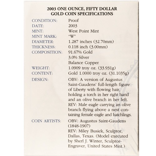 | Product Title | 2003-W 1 oz Proof American Gold Eagle Coin (Box + CoA) |