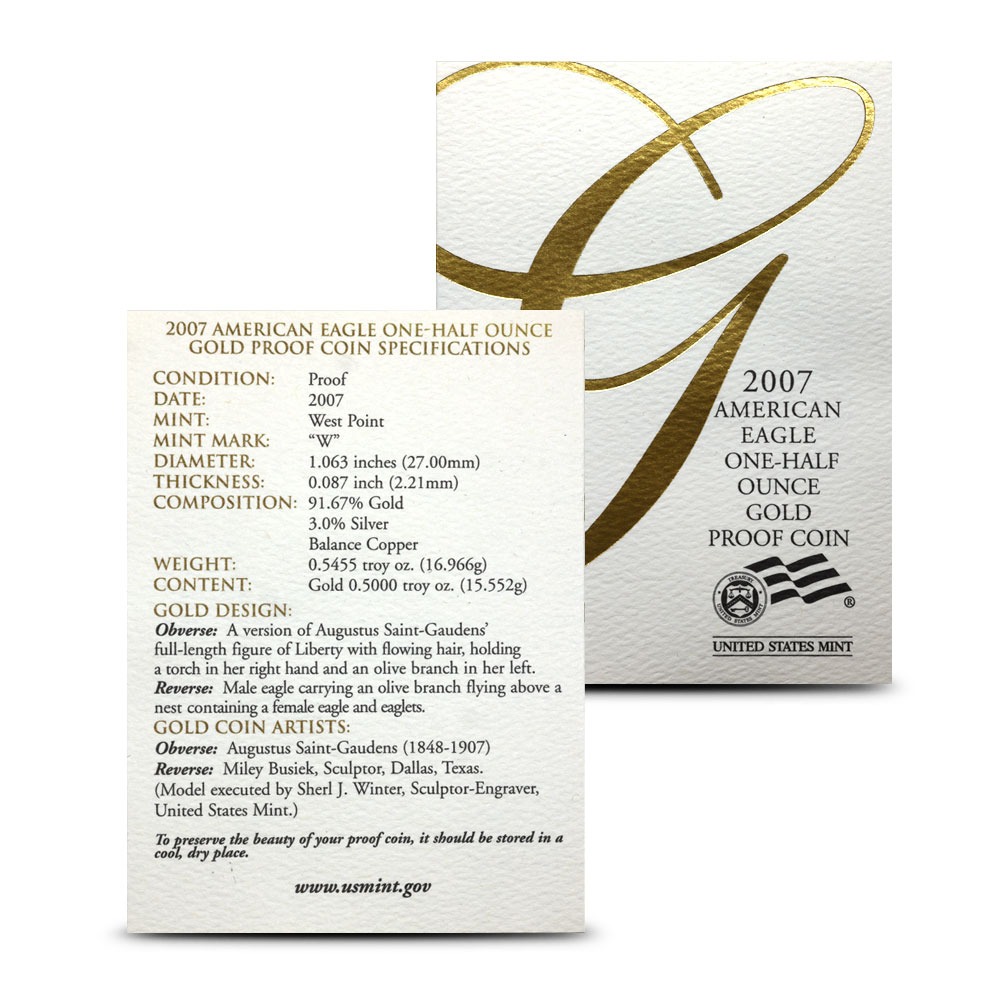 | Product Title | 2007-W 1/2 oz Proof American Gold Eagle Coin (Box + CoA) |
