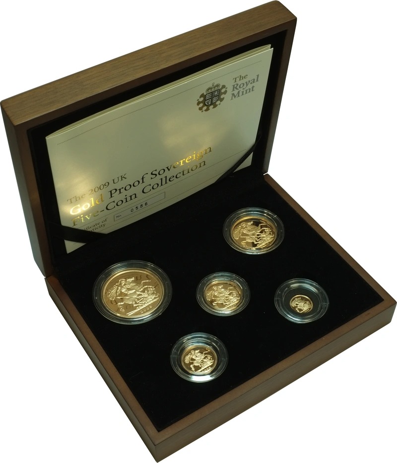 2009 Proof Gold Sovereign 5 Coin Set Boxed