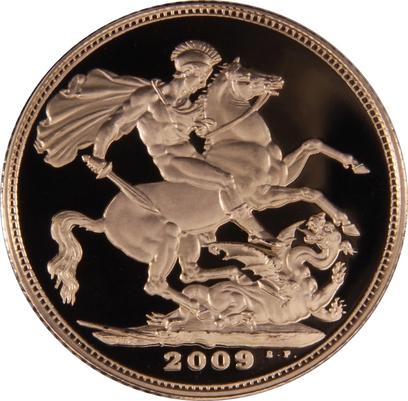 This 2009 Proof 5 Coin Gold Sovereign Set features a Quintuple Sovereign (five-pound coin), Double Sovereign (two-pound coin), Sovereign, Half Sovereign and a Quarter Sovereign. These proofs have been struck using specially selected blanks and highly polished dies. During striking, the coinage dies exert enormous pressure on the coin blank, with at least two separate blows (or strikes), ensuring that the impression has extra clarity. Complete with its own Certificate of Authenticity.