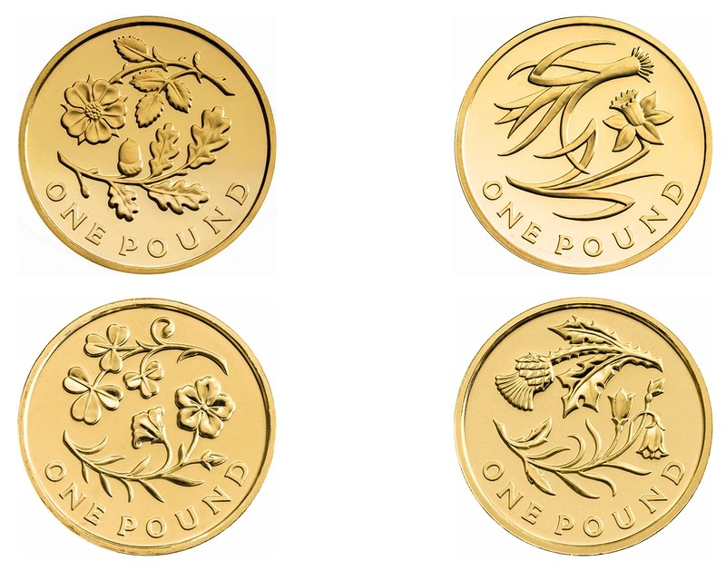 The Royal Mint produce a number of 1 Pound proof coins in gold for collectors. These gold £1 proof coins will typically be of the commemorative version of the pound coins in circulation, but in gold proof quality. Occasionally sets of £1 proof gold coins are also produced for years with multiple-coin collections.