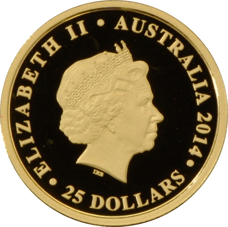 The reverse of each coin portrays a bounding red kangaroo surrounded by stylised rays of sunlight, and bordered by the inscription AUSTRALIAN KANGAROO, the weight, 9999 GOLD and the year-dates 1989 -2014. A special Perth Mint anniversary mintmark ‘P25’ also appears in the design.