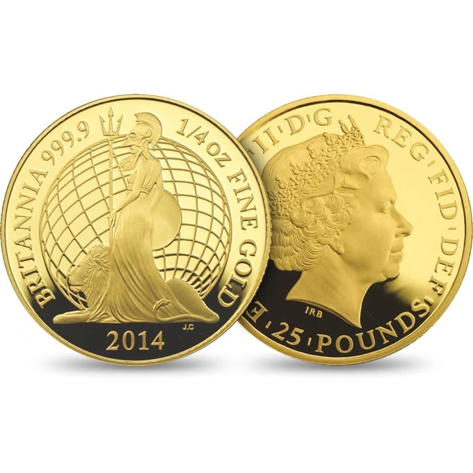 This stunning Three Gold Britannia coin Proof set from 2014 is boxed with a certificate of authenticity. The Britannia set is smaller than normal, containing three gold coins; Quarter Ounce, Tenth Ounce, Twentieth Ounce.