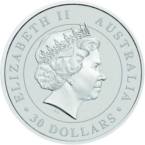 On the obverse of the 2017 1 Kilo Australian Silver Koala is the image of Queen Elizabeth II. Her Majesty features on the obverse of all Australian coinage, and her effigy has been on Australian coins since 1952. The most recent one in use on Australian currency, this is a 1998 right-profile portrait from Ian Rank-Broadley.