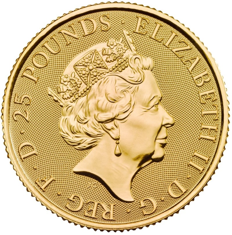This coin contains exactly 1/4 ounce of fine gold 24 carat.