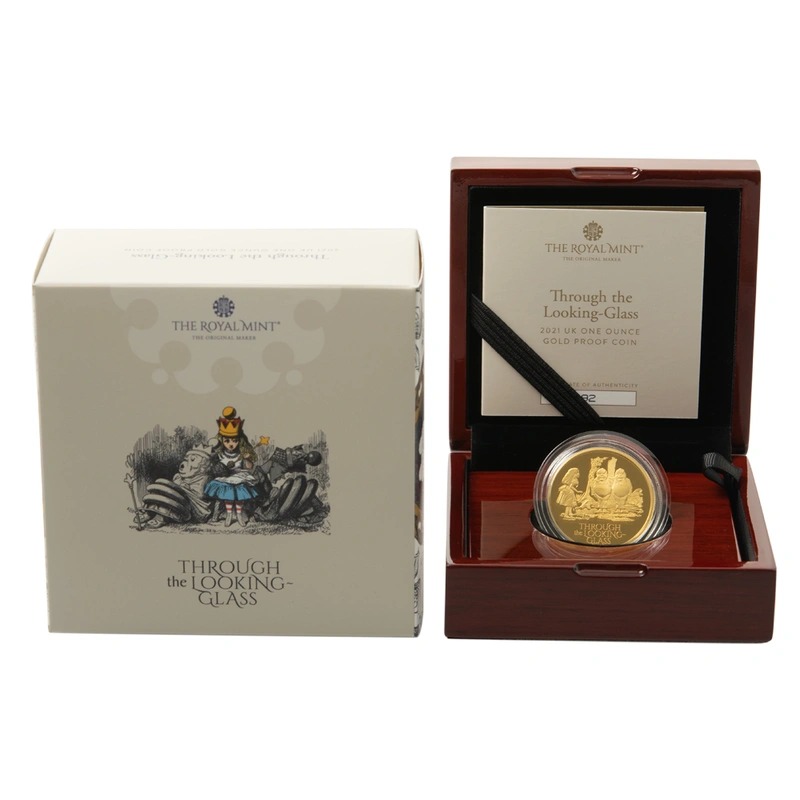 The second coin in The Royal Mint’s Treasury of Tales series – the 2021 Through the Looking–Glass 1oz gold Proof coin.