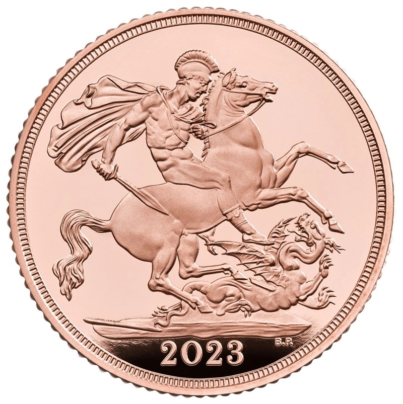 The reverse side of each coin features the enduring St George and the dragon design by Benedetto Pistrucci, which has been associated with The Sovereign since 1817. On the obverse side, there is a crowned portrait of King Charles III, exclusively designed by Martin Jennings for The Royal Mint, capturing the essence of his important coronation ceremony.