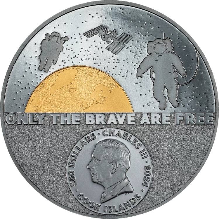 2024 5 Oz Astronaut Cook Islands Real Heroes Black Proof Gold Coin