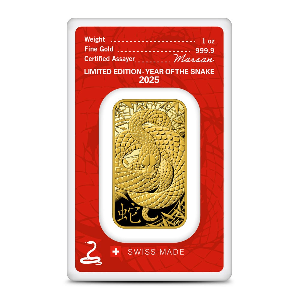 Historically, the Year of the Snake has been marked by significant events and changes on the world stage. It’s considered a time when careful planning and strategic thinking are especially important. Argor-Heraeus celebrates the Year of the Snake with a limited range of Lunar Snake-themed gold bars. Now, 2025 1 oz Argor-Heraeus Lunar Snake Gold Bars are available online.