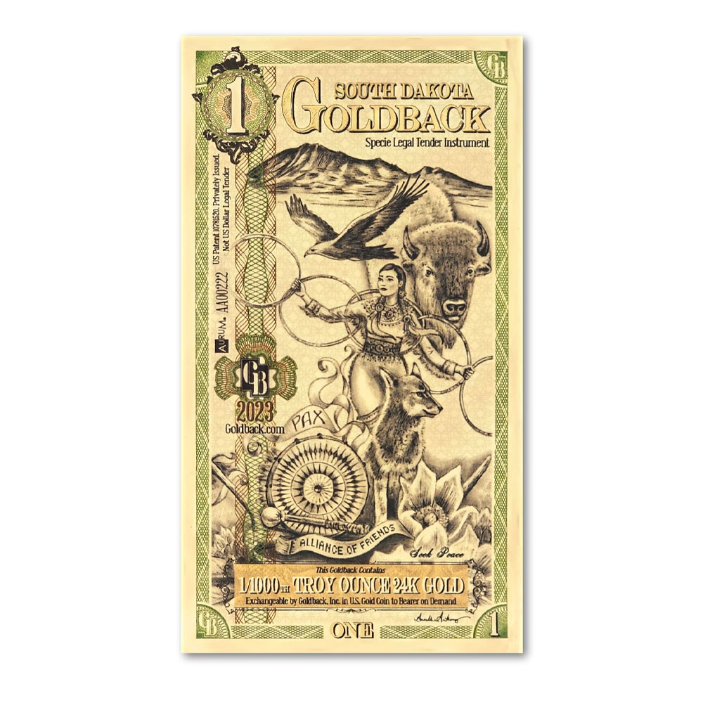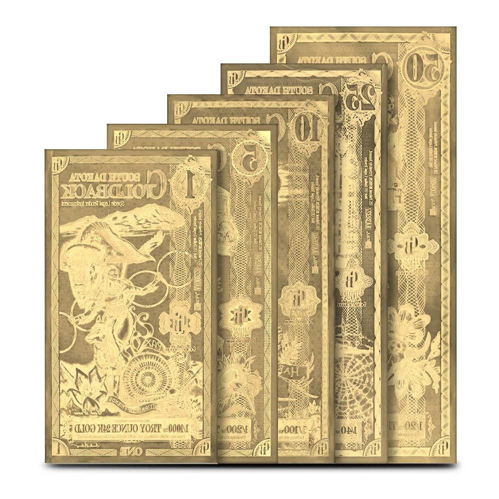 - All 5 denominations in the South Dakota Goldback Set!