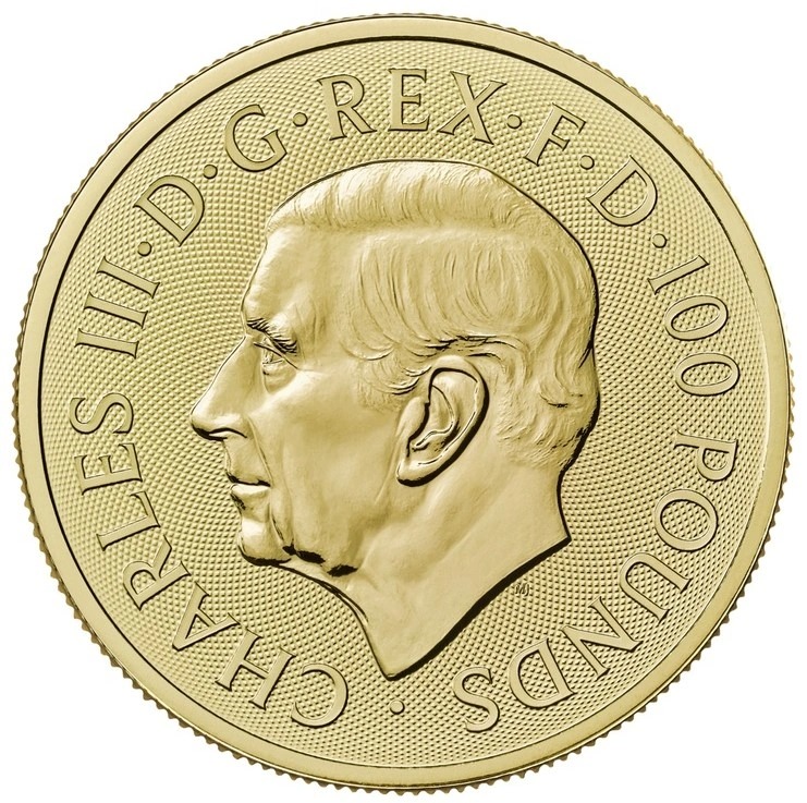 The 2023 Royal Arms 1oz gold coin is struck from exactly one troy ounce of 999.9 pure gold. It has a face value of £100.