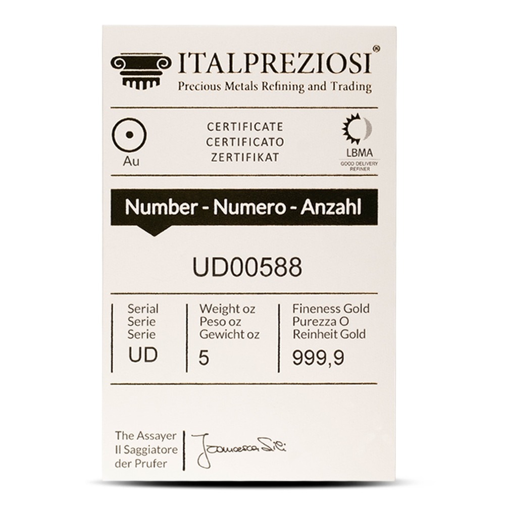 5 oz Gold Bars have a near-equal allure to investors because, situated in weight between 1 oz and 10 oz, these bars offer a similar value in terms of the price of gold per ounce. Like its counterparts mentioned above, these 5 oz Gold Bars are equally easy to transport, store for the long term, or resell at a later date in smaller batches.