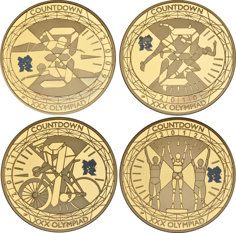 This box-set features four Proof five-pound gold coins, also known as the ‘Quintuple-Sovereign’ or the ‘Crown’. It was released to commemorate the 2012 London Olympics, and features four gold £5 Sovereigns representing events from the sporting competition.