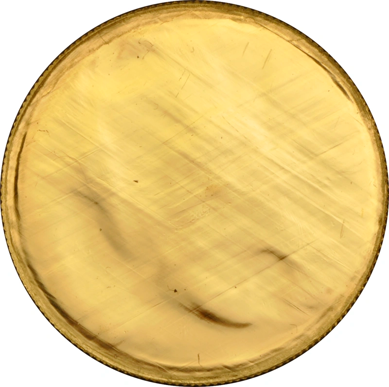 A 2014 Britannia one ounce gold coin from The Royal Mint. Struck with uniface mint error. This type of error occurs when two coin blanks enter the press instead of one. Each blank only receives half of the design.